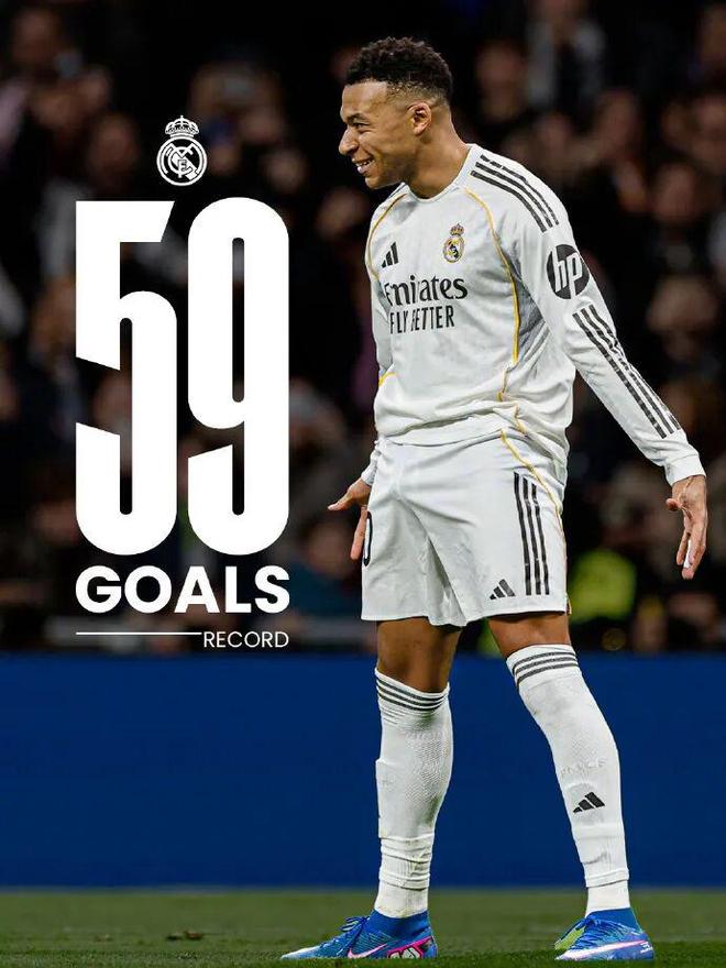 12月10日,皇马主场对阵曼城的欧冠比赛中,姆巴佩未获得出场时间。此后,在2025年所剩的三场比赛中,姆巴佩均打满全场,并在自己生日当天,打入2025年度的第59球,追平了由C罗保持的皇马球员自然年进球纪录。