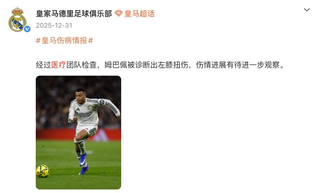 但是,在皇马发布的一份公告中,仅仅用“扭伤”来描述姆巴佩的伤情,完全隐去了医疗团队的过失。